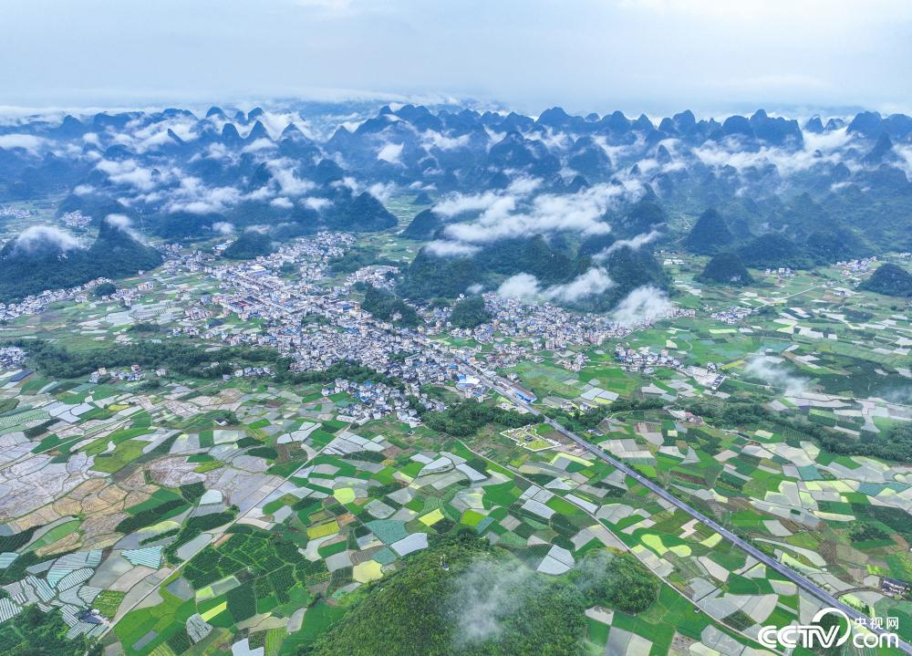 8月3日,骤雨初歇,正在广西壮族自治区桂林市荔浦市杜莫镇,村落、郊野取喀斯特山岳、云雾等相映成画,形成一幅和美的夏季村落画卷。