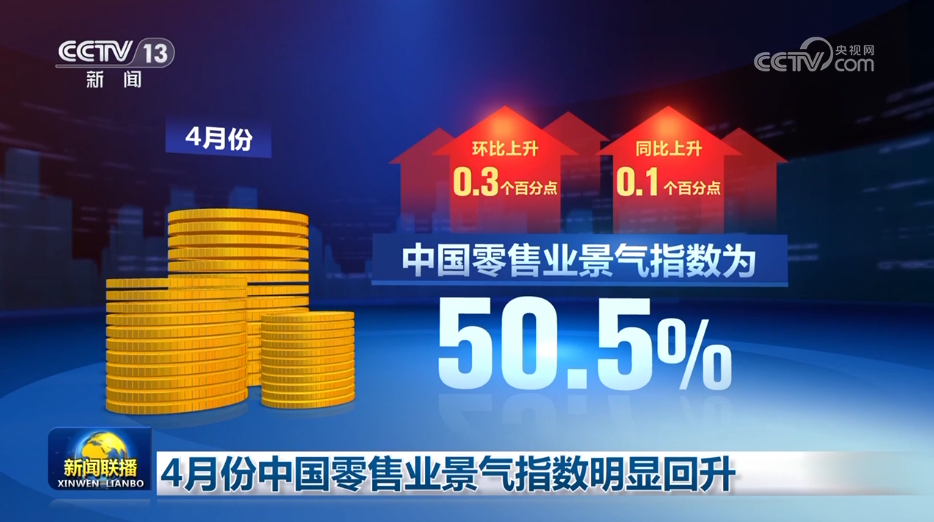 中国贸易结合会4月6日发布数据显示,4月份,中国零售业景气指数为50。5%,环比上升0。3个百分点,同比上升0。1个百分点,持续2个月上升。我国零售业市场运营持续改善,消费活力稳步提拔。